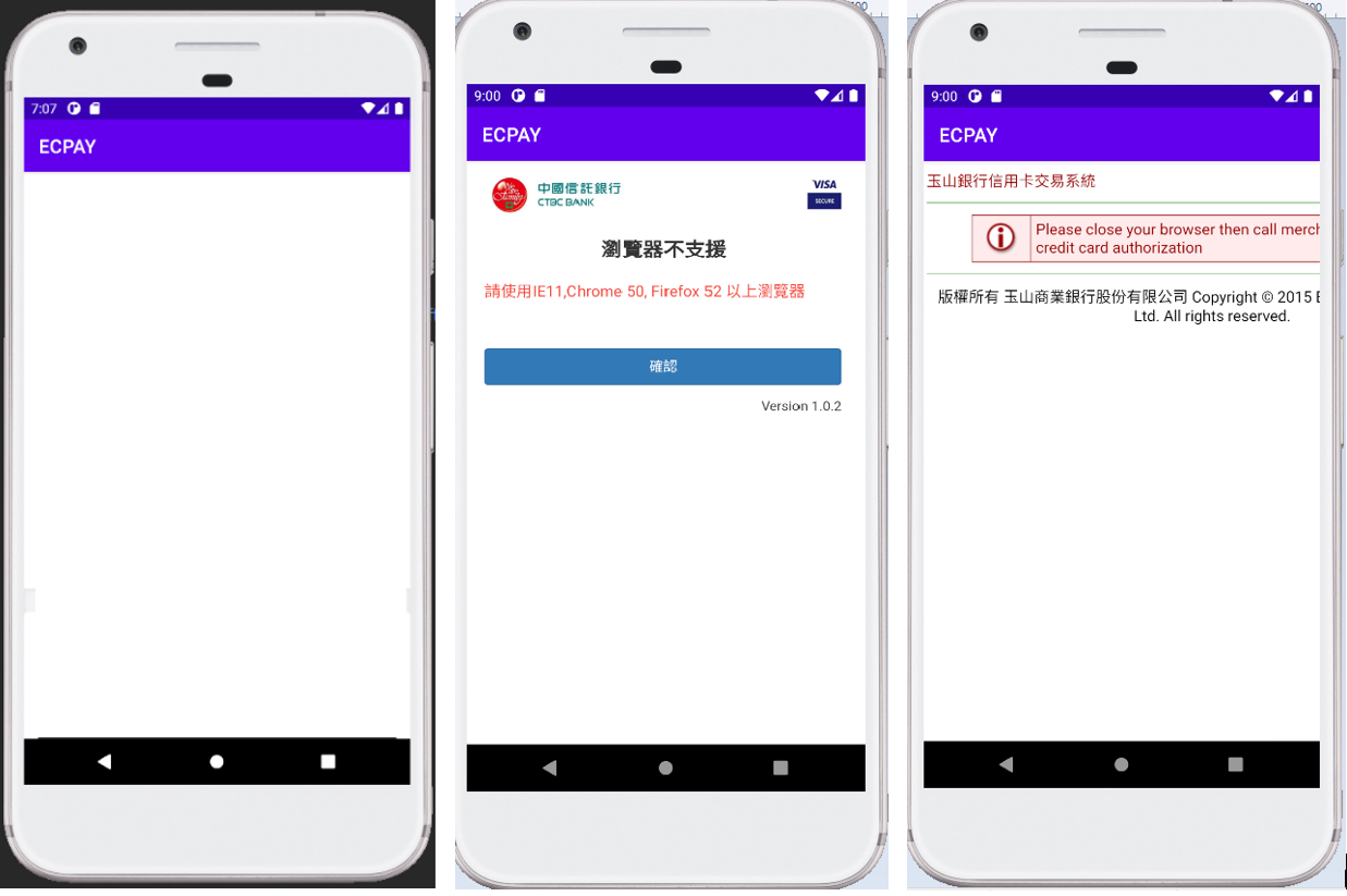2.若是使用webview方式與Ecpay串接,請注意以下事項