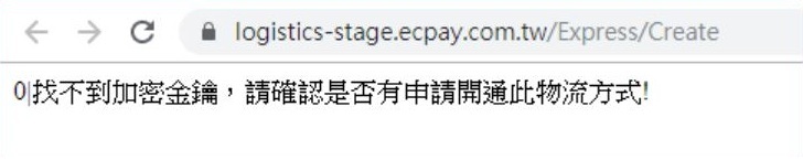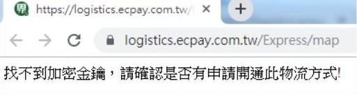 收到錯誤訊息:「找不到加密金鑰,請確認是否有申請開通此物流方式 」是什麼原因?
