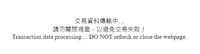 • 使用postman測試API,則會停留在「交易資料傳輸中…請勿關閉視窗,以避免交易失敗!」
